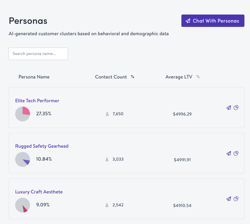 No manual setup requiredPersonas are generated automatically from your warehouse data. Once enabled for your organization, they appear in the Personas page ready to explore.